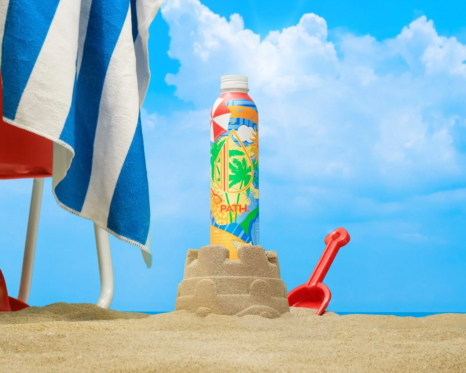 No AI beaches here! This entire scene was built a few feet from my desk with real props, real product, and studio light. Sometimes all you need is a stubborn imagination and some sand that (mostly) stays where you put it.